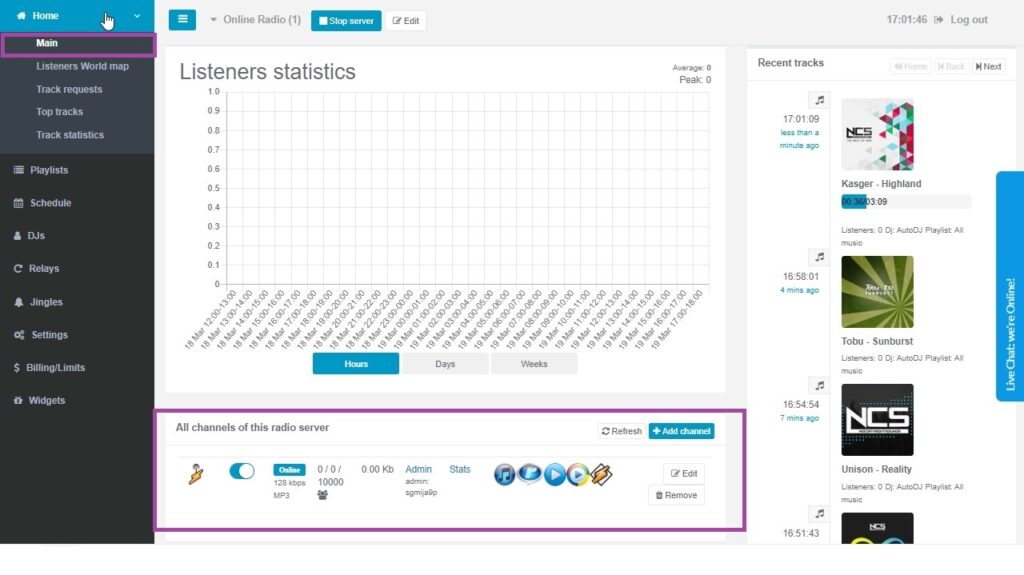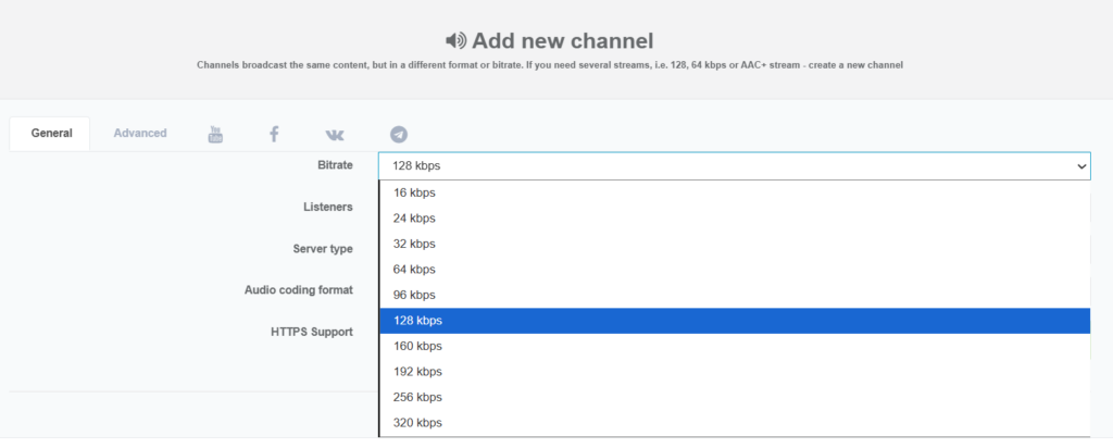 Note: All channels within a single station/server will generally broadcast the same content source (either AutoDJ or the current live DJ feed) but with different technical settings (bitrate, format).