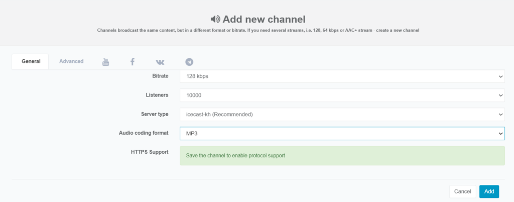 - Public Listing: Decide whether to publish the channel to streaming directories in the “Advanced” tab.