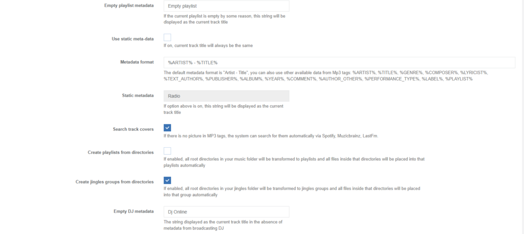 • Metadata Control: Decide whether to use dynamic metadata (showing current track title) or static metadata (hiding track titles).
